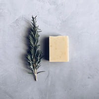 a refreshing soap with the lively scent of rosemary and lemongrass mixed with small, exfoliating bits of ground rosemary sustainably grown in the flora garden and creamy and gentle kaolin clay
